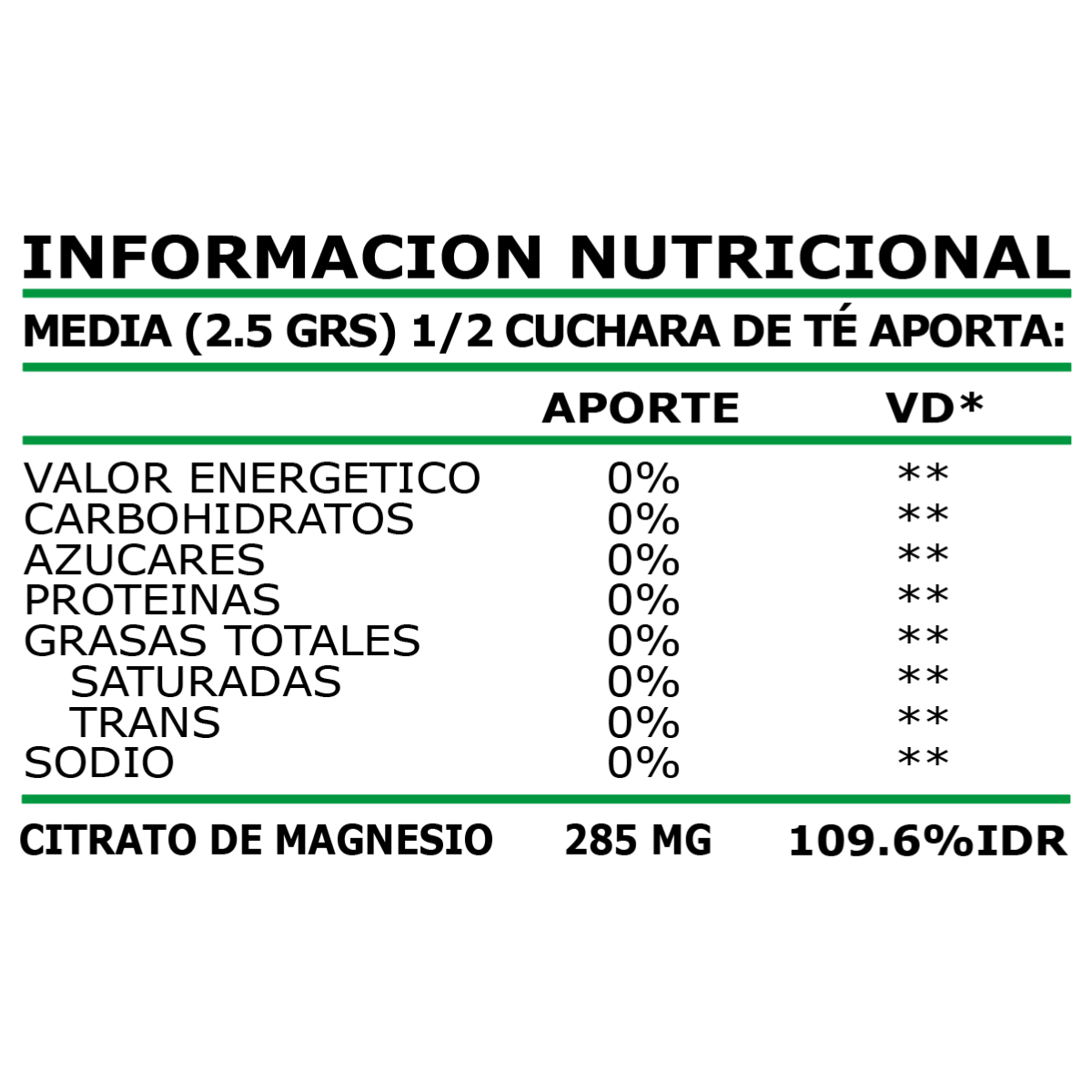 Su formato en polvo lo hace muy fácil de dosificar y mezclar con agua o jugos. No tiene sabor, así que lo podés combinar con lo que quieras sin alterar el gusto. Además, al ser citrato, su absorción es más rápida y eficiente que otros tipos de magnesio.