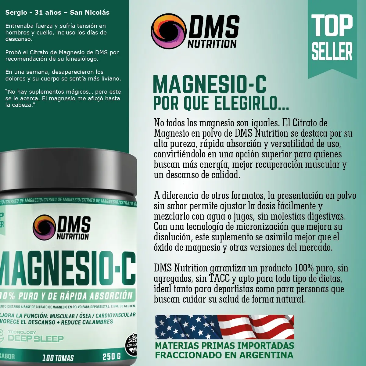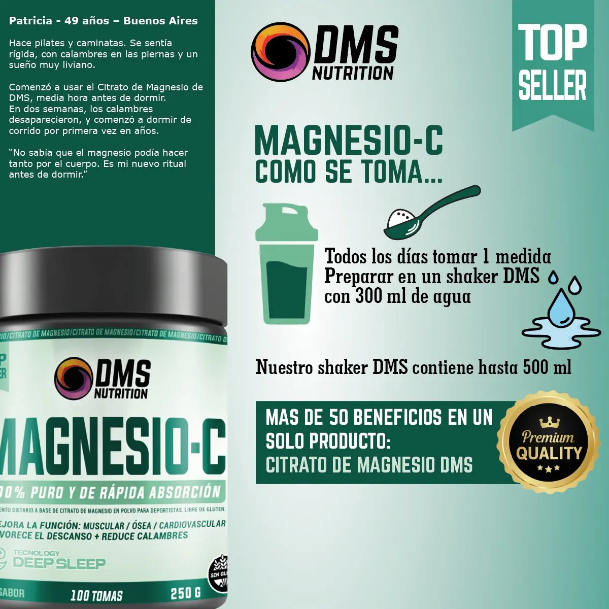 El Citrato de Magnesio de DMS Nutrition es magnesio puro, sin agregados, sin saborizantes, sin azúcares y 100% apto para celíacos (sin TACC). Viene en presentación de 250 gramos, ideal para quienes buscan un suplemento simple, potente y natural.
